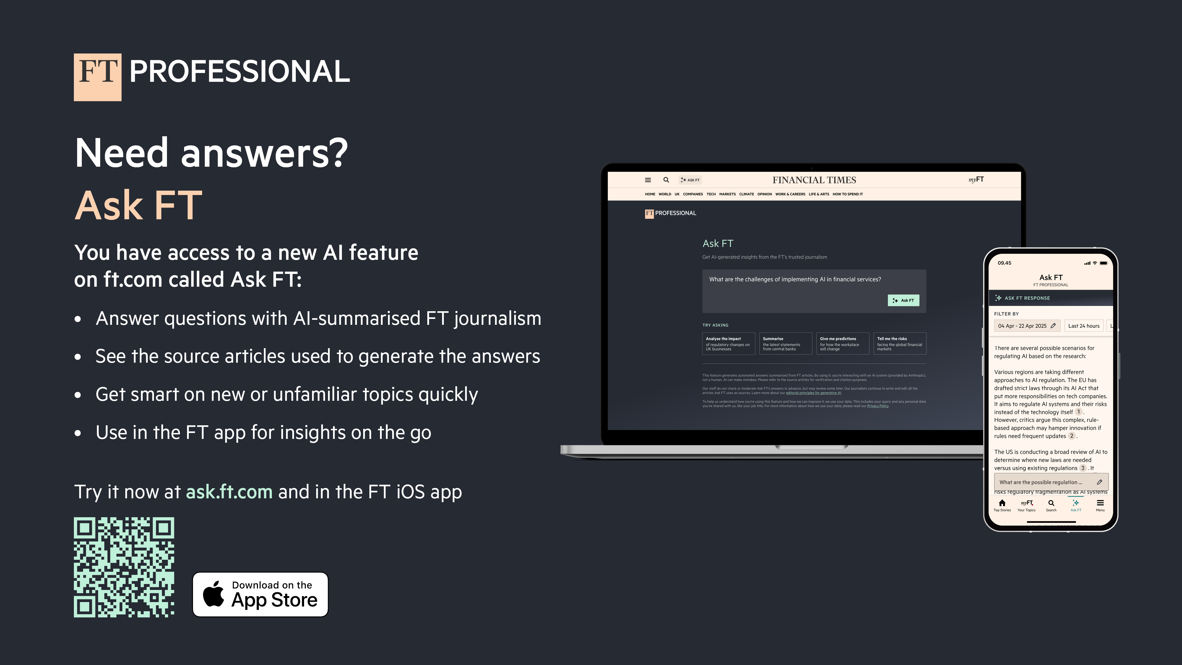 Information overload affects most organisations, but Ask FT helps our Professional subscribers use a trusted source to get answers to questions or a starting point for research more quickly.